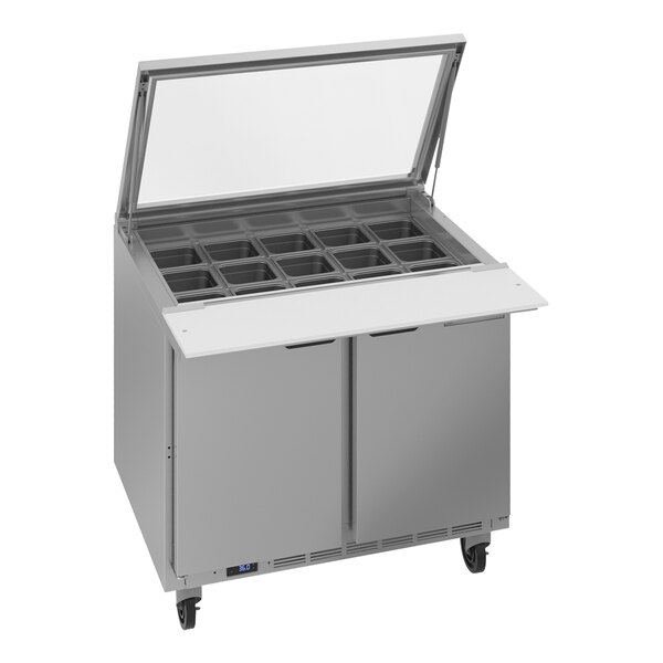 - Item #: 185se3615mshBeverage-Air SPE36HC-15M-STL Elite Series 36" 2 Door Mega Top Glass Lid Refrigerated Sandwich Prep Table