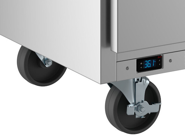 The top rail holds (12) 1/6 size food pans (included) for your mise en place, and it comes with a heavy-duty pan liner that keeps food spillage from entering the cabinet and keeps the air cooling the food pans. Plus, additional 4" deep polycarbonate food pans are included for the top section as well! It also comes with locking divider bars to ensure that food pans remain securely in place to prevent food spillage.