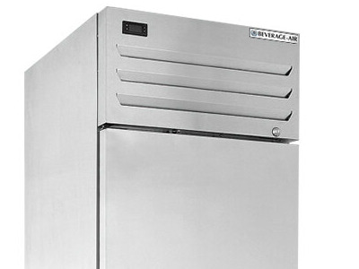 This reach-in freezer has a refrigeration system that is top-mounted, which makes it less likely to become clogged with dust and dirt.