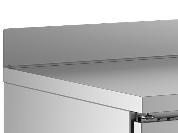This model comes with a durable stainless steel worktop that makes it great for prep work, while the 4" backsplash catches any spills from food debris, and it removes to make cleaning easy.