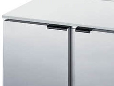 This model comes with a durable stainless steel worktop that makes it great for prep work, while the 4" built-in backsplash catches any spills from food debris and is foamed-in-place for maximum insulation. With a stainless steel front, sides, and door design, this unit can stand up to the rigors of even fast-paced kitchens, and since the interior liner is made from aluminum, you won't need to worry about rust and corrosion compromising the safety of the food you serve. The interior of this unit comes with 4 epoxy-coated shelves to accommodate any storage need and to give you the flexibility to meet changing menu needs. This model requires a 115V electrical connection