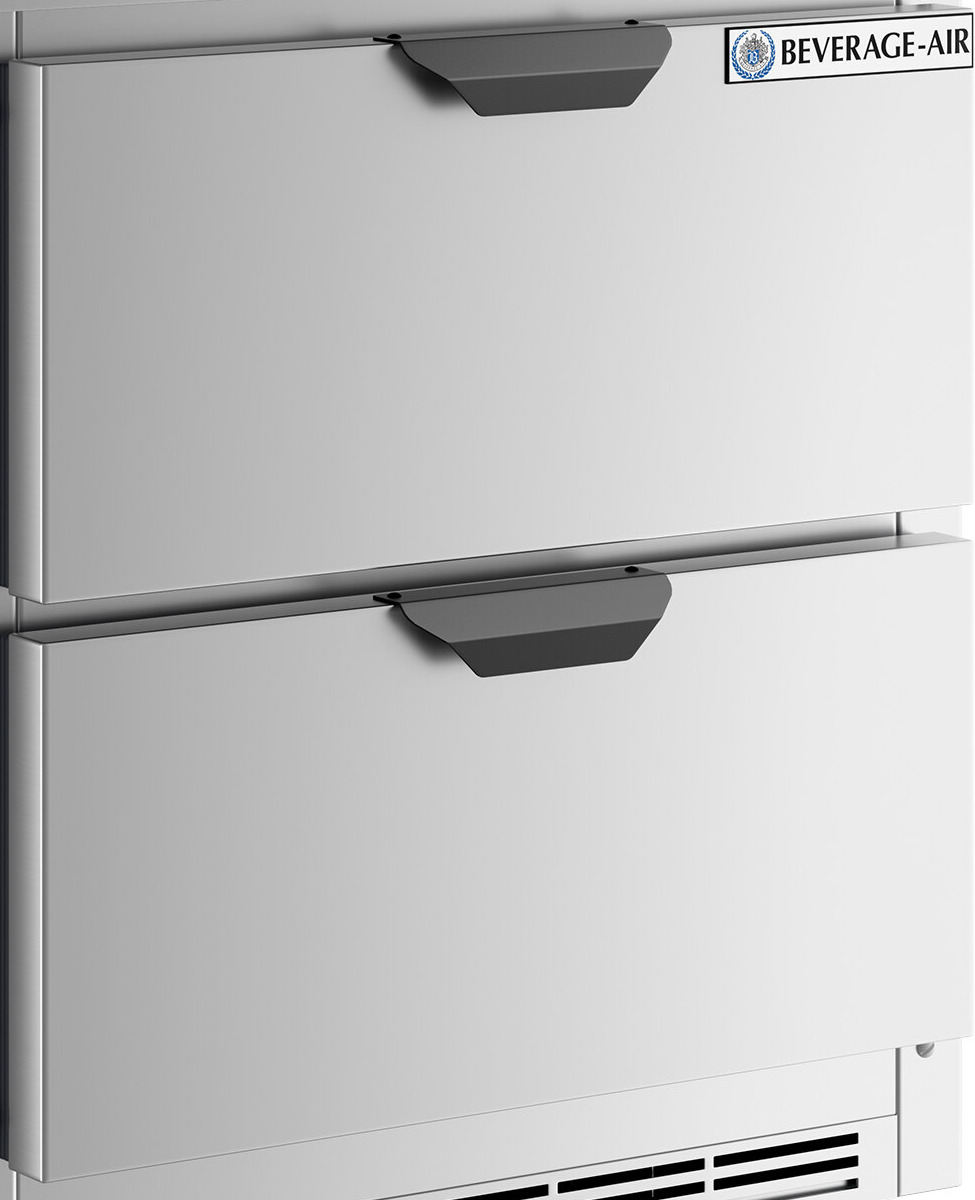Gain speedy access to your most popular ingredients with this Beverage-Air WTRD27AHC-2-FLT 27" compact undercounter refrigerator with two drawers!