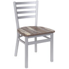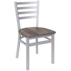 BFM Seating Lima Silver Mist Steel Customizable Ladder Back Side Chair with Relic Farmhouse Seat