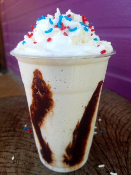 This is a favorite frap in our shop, taste just like cake. Kids get excited for these especially when you go all out and top with sprinkles
