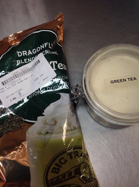 Big Train green Tea frappe is a great addition to our menu. This makes a great latte. Try it blended for a nice refreshing drink in the summer.