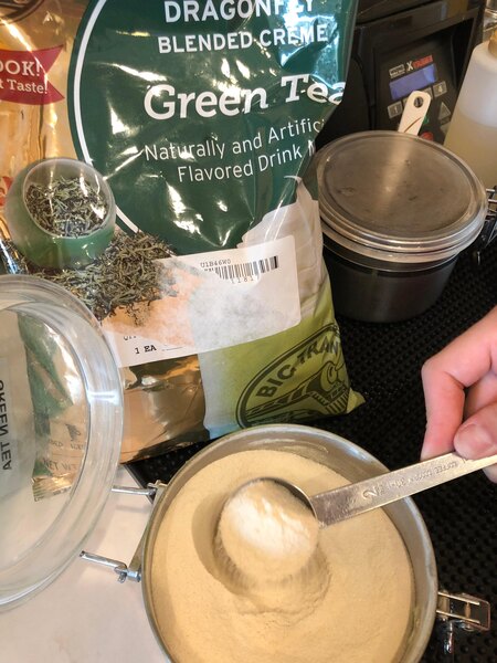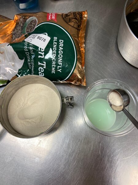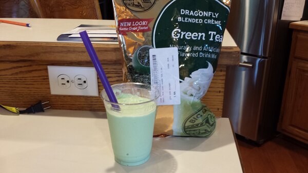 The Dragonfly green tea blended frappe mix, is very flavorful, delicious and natural. We even add it to the pancake mix for green tea lovers!