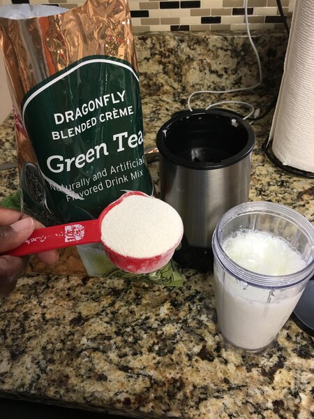 Not my favorite blended green tea ever but it's pretty dang good especially for the price. It mixes up into a creamy drink when blended with only water. It's a good balance of sweetness.