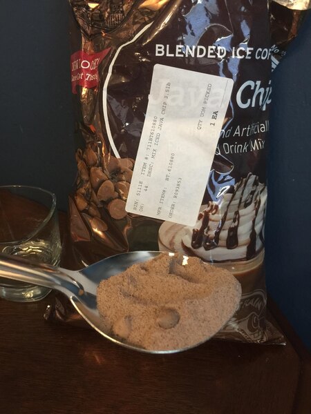 Offer irresistible chocolate flavor in your coffee beverages with this Big Train java chip blended ice coffee mix! This drink mix includes decadent chocolate chips blended with smooth Arabica coffee. Give your customers an energizing caffeine boost with signature coffee drinks that can be served hot, over ice, or blended! Easy to make, this mix can be used as a base to create your own chocolate-inspired drinks and mochas. Top off your drinks with whipped cream and extra chocolate chips! Featuring a rich, invigorating taste your patrons are sure to enjoy, this drink mix is trans fat free and contains no hydrogenated oil.