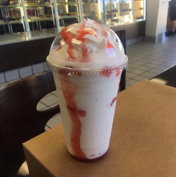 By far one of my favorite flavor strawberry banana Blended frappe mix taste just like a strawberry banana smoothie very delicious product from big train