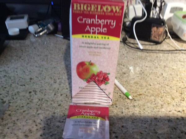 This Bigelow cranberry apple herb tea tastes great and is a great quality! It is exactly the same brand you would find in grocery stores but there is a better selection on here.