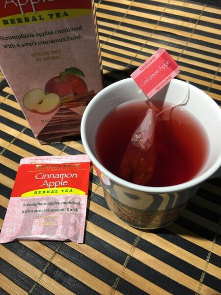 This Bigelow cinnamon apple herbal tea is great especially with a cinnamon stick steeping with the tea bag! it reminds me of apple cider without all the sugar