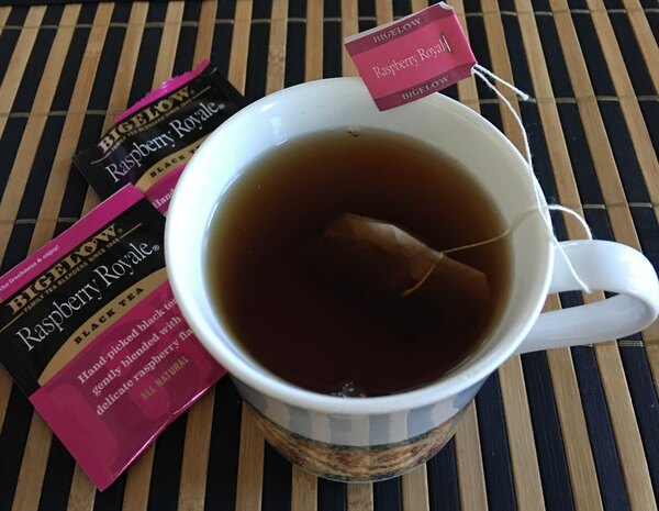 The Bigelow raspberry royale tea steeps much quicker than some other teas available. It provides a pleasant aroma infused with the raspberry, but the raspberry flavor itself is less present.