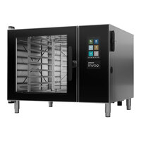 Enhance efficiency in your kitchen with these Blodgett Invoq Stackit double-stacked combi ovens! These combi ovens allow for baking, cooking, and steaming in one convenient location. Its double-stacked design consists of a 61BLE combi oven stacked on a 101BLE combi oven to double your cooking capacity in a compact footprint. The top oven fits up to (5) 18" x 26" full-size sheet pans using a Multi-Rack (sold separately) or (7) 12" x 20" hotel pans, while the bottom oven fits up to (7) 18" x 26" full-size sheet pans using a Multi-Rack (sold separately) or (10) 12" x 20" hotel pans. They feature 7" TFT color touchscreens for simple and intuitive operation. Plus, they each hold a total of 1,500 recipes with up to 15 different steps per recipe. Recipes can be grouped and uploaded with matching photos.