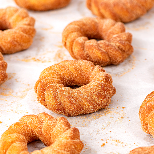 - Cinnamon Sugar Donut Topping Applications: Cinnamon sugar twists, churros, sour cream donuts, apple cider donuts, cake donuts, cinnamon rolls