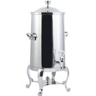 Serve hot beverages in style with this Bon Chef 49005-1-E Roman 3 gallon stainless steel coffee chafer urn. This sophisticated electric coffee urn can simply be plugged in to keep your beverages piping hot during service. It's the perfect addition to lengthy, upscale parties and catered events. Additionally, this coffee urn comes with brass trim for a beautiful addition to your beverage service tables. The stainless steel body is not only easy to clean but it can be polished to shine for a regal look that rivals its superior durability. You can also choose your desired spigot for easy pouring. This chafer urn's threaded lid is spill proof to minimize mess should the chafer get knocked over.