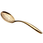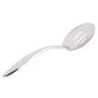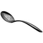 Serve your signature dishes in style with this Bon Chef 9464HFB 9 3/4" black hammered stainless steel slotted serving spoon with hollow cool handle. Made with a durable stainless steel construction, this spoon is built to last in your busy establishment. The elegant style combined with a hammered black finish makes it particularly ideal for front-of-house use at buffets, catered events, or parties. Plus, the hollow cool handle provides protection from heat and prevents painful burns. The handle is also ergonomically curved for a balanced and comfortable grip.