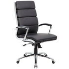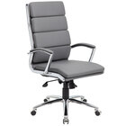 Be seated in comfort and style with this Boss executive chair. Upholstered in a breathable gray CaressoftPlus vinyl material, this high-back style chair is sure to be a comfortable addition to your work environment. The Caressoft upholstery mimics the look and feel of real leather while offering added durability and easy cleanability for long-lasting use. It's height adjustable thanks to a pneumatic gas lift seat height adjustment, so it's able to accommodate people of all different heights, and a heavy-duty dual paddle spring tilt mechanism allows you to change the angle of the seat for maximum comfort! Its padded, chrome-plated armrests allow you maximum relaxation.