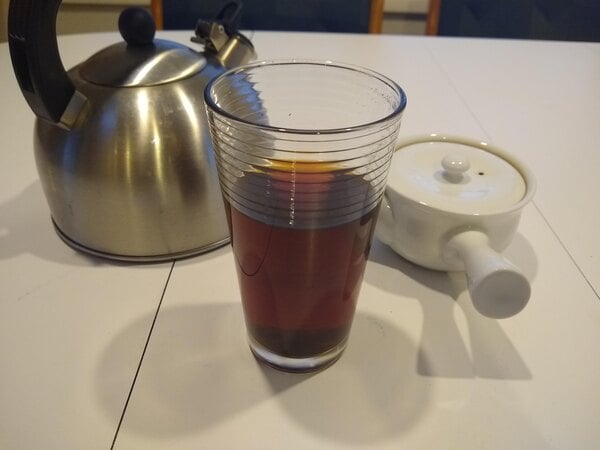 This tea is very dark and tastes great. I was expecting the coffee to be overpowering and bitter, but it is actually surprisingly balanced. You can still taste the grassy and malty notes from the black tea, and the coffee doesn't taste burnt or bitter at all. It tastes great mixed with milk, but I also like just drinking it straight.