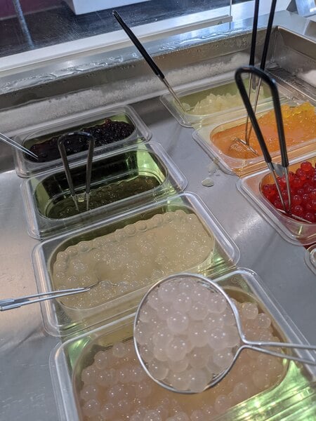 I can't believe this flavor doesn't have more reviews in general! The pink rose is one of my favorite popping boba flavors and our guests love it. It's really pretty light pink in color with little flecks of darker pink in the boba itself which makes it look beautiful in drinks. We use it for bubble teas, bottled specialty drinks and cocktails and mocktails as well. Definitely give this flavor a try! It's lightly floral. Not soapy at all.