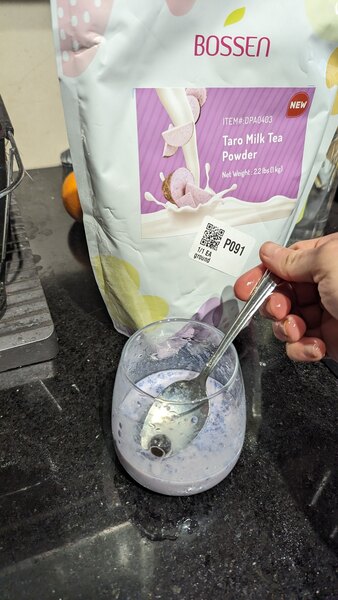 I love taro milk tea. This tastes just like taro tea I buy at a bubble tea store. You will likely need some simple syrup to add to your final product as you need it.