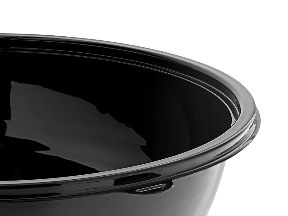 This bowl is made with sturdy PET construction. The black coating provides an upscale look and is sure to blend into nearly any occasion.