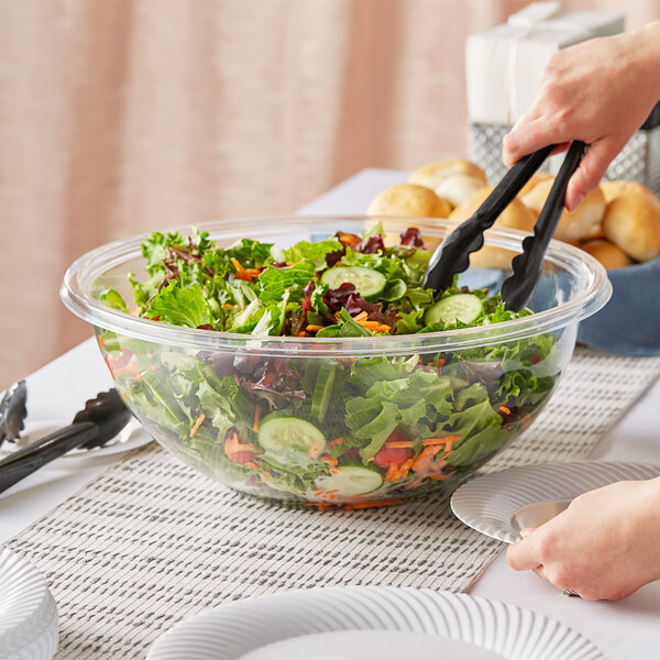 This bowl is made with sturdy PET construction. With a clear design, guests will be able to see the contents of the bowl from all angles.
