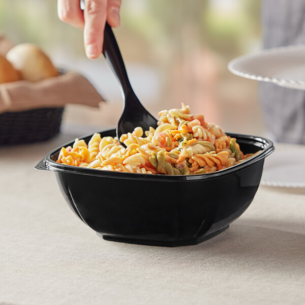 Pair this bowl with a lid (sold separately) to either send food home with guests or restock grab-and-go buffets with product. The quick-release tab makes removing the lid a simple, no-hassle experience. With a 48 oz. capacity, you'll be able to store cold foods like salads, sides, or pastas. It is only recommended to use this bowl with cold food.