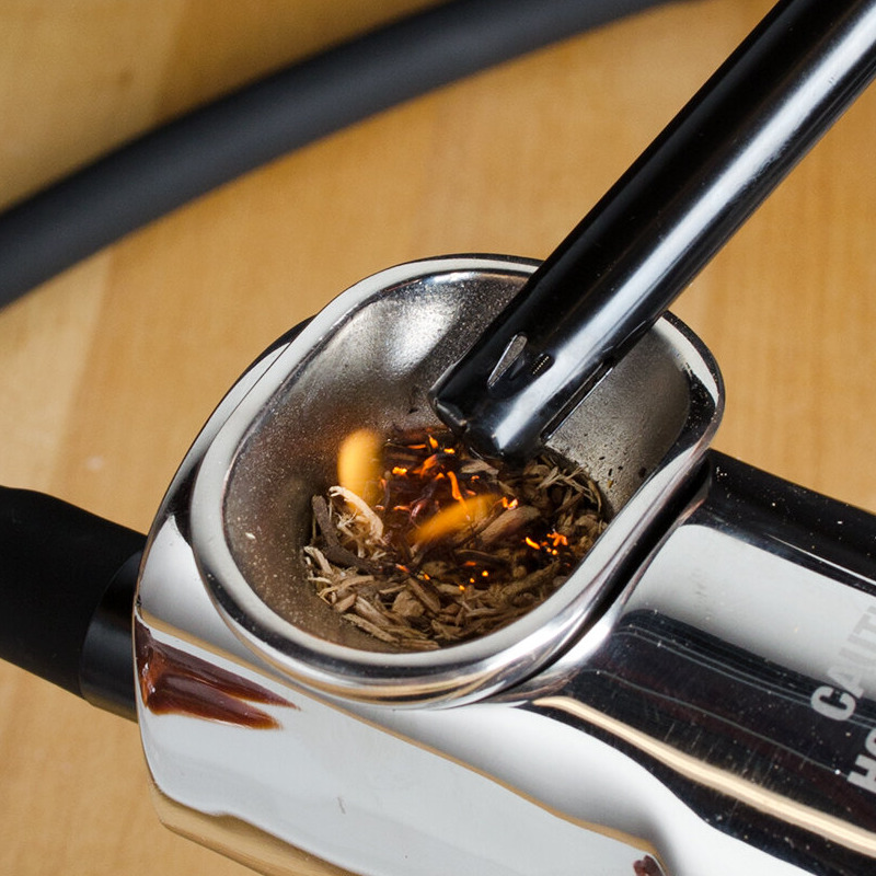 Use this smoking gun with wood chips, tea, herbs, spices, or other fuels to create your own special flavors! This unit even comes with 0.5 oz. samples of apple and hickory wood chips so you can start using it right away and try out some basic flavors. If you do use a different type of combustible than the wood chips provided, the manufacturer of this smoker gun recommends making sure the particles are of a similar size for optimum performance. Using chips that are too fine or too small may result in poor results.