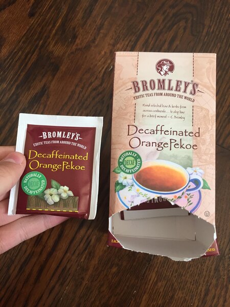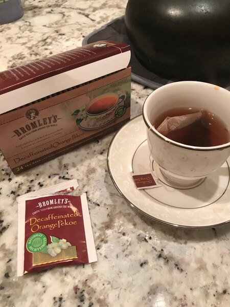 The Bromley exotic orange Pekoe decaffeinated tea is wonderful and delicious. I love the great orange citrus flavor and the tea is great for night time drinking.