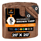 This Xpose Safety weather-resistant 5 mil multipurpose polyethylene tarp is a reliable solution for protecting important items from the elements! This multipurpose tarp can be used for outdoor applications such as covering equipment, building materials, and heavy machinery. It's made with 5 mil polyethylene material that features a 3.6 oz. / sq. yd., 8 x 8 fabric weave count and a double-sided laminated coating. It also has reinforced poly rope sewn in and hemmed, reinforced corners for durable strength. The weather-resistant material is designed to withstand heat, wind, water, and rain and won't deform, fade, or shrink. This makes it ideal for use as a curtain, awning, temporary wall, or as a protective weather blocker at campsites or construction sites.