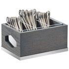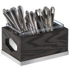 The open design also notifies staff when refills are necessary, promising your guests never run out of the necessary flatware. Thanks to this organizer's durable stained oak base, this organizer gives a modern rustic appeal to any restaurant, catered event, cafe, or hotel! Use it by itself, or add it to the rest of Cal-Mil's Cinderwood line (sold separately) to create a modern look to your coffee shop or hotel!