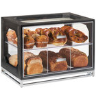 This case includes three top drawers for loaves of bread as well as a large bottom bin. Fill this with your choice of bagels, muffins, or deliciously eye-catching pastries that your guests will love. Each tier features a chrome plated handle for easy opening. Keep your breads and pastries on display and within easy reach with this convenient, stylish Cal-Mil Cinderwood case!
