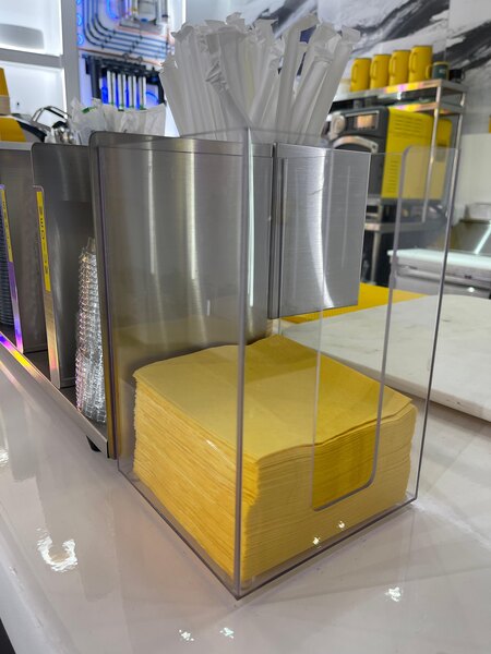 I recommend to use these behind the counter, not at the reach of the customer. It perfectly holds white squared napkins. It might get stains easily but it is easy to clean with some sanitizer of just a water.