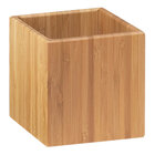 Use the Cal-Mil C4X4-60 4" square bamboo condiment and flatware holder to stay organized and keep counters and tabletops free of clutter. Hold sugar packets, individual coffee creamers, drink stirrers, and more with this square, eco-friendly bamboo jar. Perfect for creating an ornamental display in any establishment, this jar is also great for holding potpourri, flatware, loose tea, and spices. It can be used on its own or with additional jars and displays (sold separately).