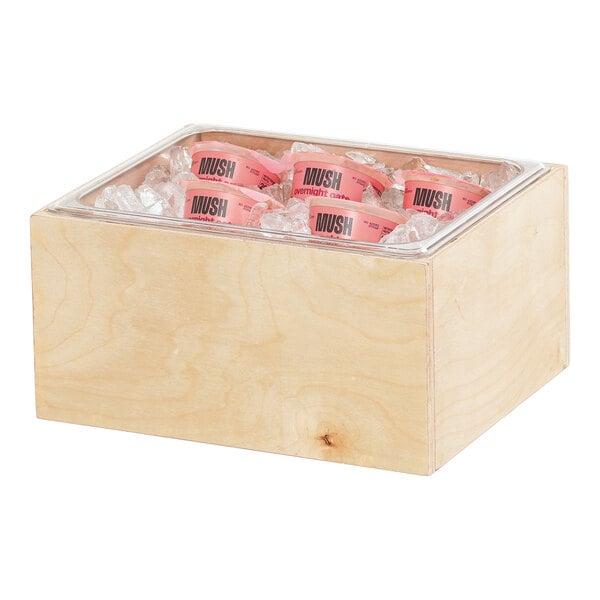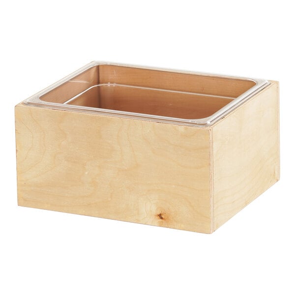 Display your offerings in style with this Cal-Mil Logan natural birch wood ice housing! This ice housing is made of durable birch wood with a natural wood color that provides a minimalist aesthetic that complements your decor beautifully. The polycarbonate condensation liner and pan help keep ice runoff contained, providing you peace of mind that your beverage area will stay free from messy leaks. The simple design of this ice housing allows for quick and easy assembly and cleanup for any event.
