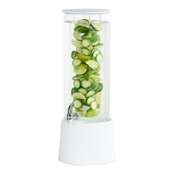 Cal-Mil Logan 3 Gallon Round Beverage Dispenser with Infusion Chamber and White Melamine Base 26135-3INF-15