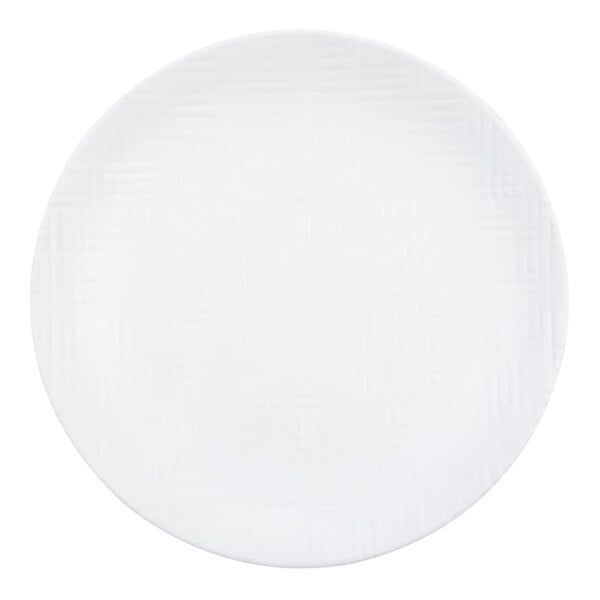 Thanks to its raised couped edges, this plate is a dependable, professional addition to your establishment, combining modern stylishness with a practical spill-resistant design. The versatile white color of this piece fits right in with any existing dinnerware to maintain cohesion throughout your restaurant. Additionally, the cross hatched texture adds a unique look for further visual interest. Combine this dish with other colored melamine dinnerware from the Cal-Mil Sedona collection for a stylish and cohesive display.