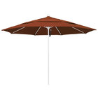 Keep your decks, outdoor dining areas, or pool-side patios shaded with this California Umbrella ALTO 118 OLEFIN Venture 11' round pulley lift umbrella with 1 1/2" matte white aluminum pole. An essential addition to commercial environments, the Venture series offers umbrellas that are created with superior materials and exude a classic, sophisticated appearance. This umbrella features a 1 1/2" thick, double wall matte white aluminum pole with sleek, stainless steel hardware for a robust foundation. Its 1/2" thick, high-density fiberglass ribs bend with the wind without snapping or breaking, yet provide excellent support for the canopy. In addition, the double wind vent allows for sufficient air flow to ensure stability and prevent the umbrella from moving with strong wind gusts. The Olefin fabric is water-resistant but not water-proof and is not intended for use in wet conditions. During inclement weather, please store umbrellas in a dry location or cover with a protective umbrella cover sold separately.