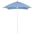 Keep your decks, outdoor dining areas, or pool-side patios shaded with this California Umbrella ALTO 604 SUNBRELLA 1A Venture 6' square push lift umbrella with 1 1/2" matte white aluminum pole. An essential addition to commercial environments, the Venture series offers umbrellas that are created with superior materials and exude a classic, sophisticated appearance. This umbrella features a 1 1/2" thick, double wall matte white aluminum pole with sleek, stainless steel hardware for a robust foundation. Its 1/2" thick, high-density fiberglass ribs bend with the wind without snapping or breaking, yet provide excellent support for the canopy. In addition, the single wind vent allows for sufficient air flow to ensure stability and prevent the umbrella from moving with strong wind gusts. The Sunbrella fabric is water-resistant but not water-proof and is not intended for use in wet conditions. During inclement weather, please store umbrellas in a dry location or cover with a protective umbrella cover sold separately.