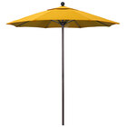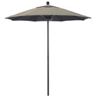 Keep your decks, outdoor dining areas, or pool-side patios shaded with this California Umbrella ALTO 758 SUNBRELLA 1A Venture 7 1/2' round push lift umbrella with 1 1/2" bronze aluminum pole. An essential addition to commercial environments, the Venture series offers umbrellas that are created with superior materials and exude a classic, sophisticated appearance. This umbrella features a 1 1/2" thick, double wall bronze aluminum pole with sleek, stainless steel hardware for a robust foundation. Its 1/2" thick, high-density fiberglass ribs bend with the wind without snapping or breaking, yet provide excellent support for the canopy. In addition, the single wind vent allows for sufficient air flow to ensure stability and prevent the umbrella from moving with strong wind gusts. The Sunbrella fabric is water-resistant but not water-proof and is not intended for use in wet conditions. During inclement weather, please store umbrellas in a dry location or cover with a protective umbrella cover sold separately.