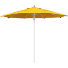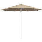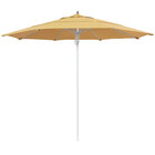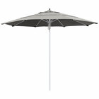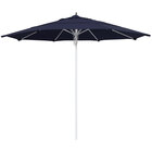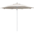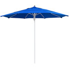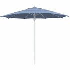 Keep your decks, outdoor dining areas, or poolside patios shaded with this California Umbrella Newport Series 11' air blue pulley lift umbrella with 1 1/2" silver anodized aluminum pole. This umbrella features a 1 1/2" thick, double wall silver anodized aluminum pole with sleek, stainless steel hardware for a robust foundation. Its 1/2" thick, high-density fiberglass ribs bend with the wind without snapping or breaking, providing excellent support to the canopy. Plus, the umbrella's 11' size has sufficient area coverage, providing multiple guests with relief from the sun's rays. The Sunbrella fabric is water-resistant but not water-proof and is not intended for use in wet conditions. During inclement weather, please store umbrellas in a dry location or cover with a protective umbrella cover sold separately.