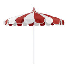 California Umbrella Pagoda 8 1/2' Round Push Lift Umbrella with 1 1/2" Silver Aluminum Pole - Sunbrella 2A Canopy - Natural / Jockey Red Fabric