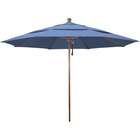 Keep your decks, outdoor dining areas, or poolside patios shaded with this California Umbrella Venture Series 11' lemon pulley lift umbrella with 1 1/2" American oak aluminum pole. This umbrella features a 1 1/2" thick aluminum pole with an American oak finish, giving it a classic wooden look without requiring the upkeep. The aluminum pole uses sleek, stainless steel hardware for a robust foundation, and the umbrella's high-density fiberglass ribs bend with the wind without snapping or breaking, providing excellent support to the canopy. Plus, the umbrella's 11' size has sufficient area coverage, providing multiple guests with relief from the sun's rays. The Olefin fabric is water-resistant but not water-proof and is not intended for use in wet conditions. During inclement weather, please store umbrellas in a dry location or cover with a protective umbrella cover sold separately.
