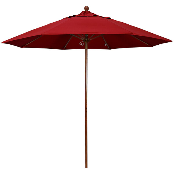 California Umbrella Venture Series 9' Push Lift Umbrella with 1 1/2" American Oak Aluminum Pole - Pacifica Canopy - Red Fabric