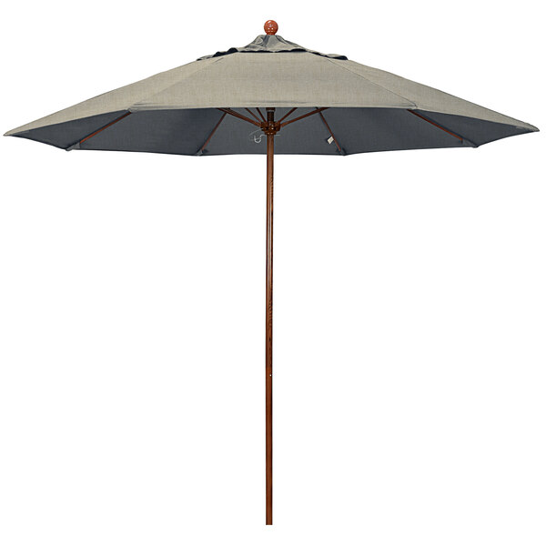 California Umbrella Venture Series 9' Push Lift Umbrella with 1 1/2" American Oak Aluminum Pole - Sunbrella 1A Canopy - Spectrum Dove Fabric