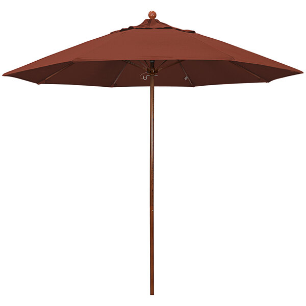 California Umbrella Venture Series 9' Push Lift Umbrella with 1 1/2" American Oak Aluminum Pole - Sunbrella 2A Canopy - Terracotta Fabric