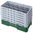 Cambro 10HS1114119 Sherwood Green Camrack Customizable 10 Compartment 11 3/4" Half Size Glass Rack with 6 Extenders