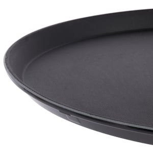 Perfect for a variety of businesses, from bars to banquet halls, this 16" black non-skid serving tray ensures that orders don't slide during transport or service. Its strong design and non-skid surface make it great for serving a variety of dishes and beverages while its black color showcases the orders, helping to create eye-catching presentations.