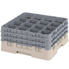 Each Cambro 16S738168 customizable 16 compartment full size Camrack is made of long-lasting polypropylene. Their easy-to-handle design features a 1/2" overlap and smooth sides. Rounded handles on all four sides allow for a tight grip, further accentuated by smooth sides and rounded corners to reduce the risk of injuriy.
