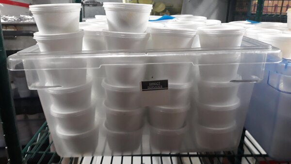 We use this in my baking and pastry class to store our scones in for freezing after being made. We can fit about 100 small scones in it. It's a great size for us. The lid fits tightly, but it's not water tight.
